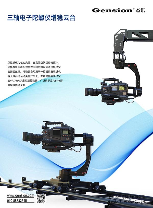 以陀螺仪为核心元件,在高效空间运动拍摄中,使摄像机画面相对惯性空间的给定姿态保持稳定的画面效果。增稳云台可用于伸缩摇臂及轨道机器人等高速运动类型产品上,并提供精确稳定的VR/AR/XR虚拟跟踪数据,广泛用于室内外电影电视等拍摄录制。