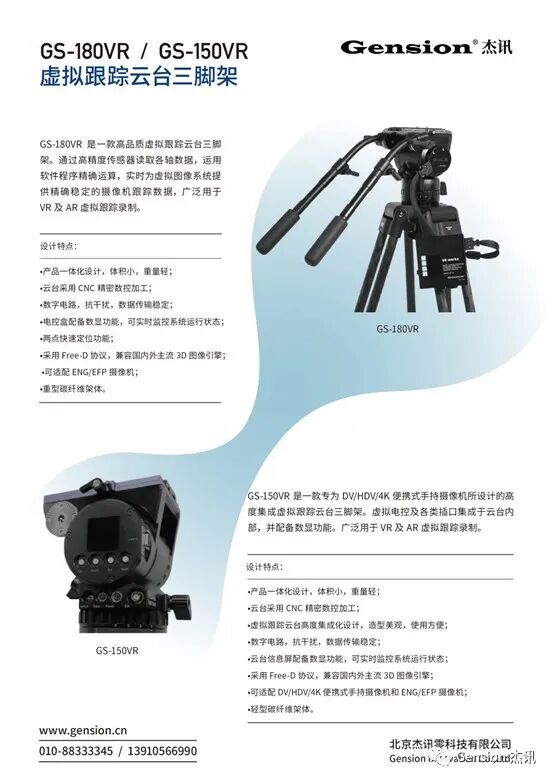 GS-150VR是一款专为DV/HDV/4K便携式手持摄像机所设计的高度集成虚拟跟踪云台三脚架。虚拟电控及各类插口集成于云台内部,并配备数显功能。广泛用于VR及AR虚拟跟踪录制。