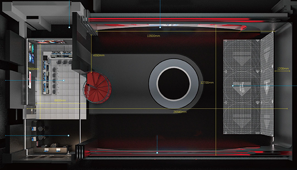 演播室核心区域之一,作为沉浸式虚拟互动空间,主要用于创建虚拟环境和增强现实效果,适合多种演播形式,包括实践教学、影视作品制作、节目演播,以及新媒体教学等。演播区内设置三个摄像机位,虚拟场景灵活切换和实时渲染,使该区域能够适应不同的内容需求,如新闻播报、人物访谈和专题节目制作等。